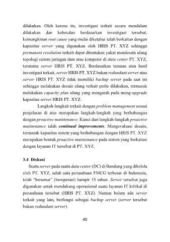 investigasi terkait, server HRIS PT. XYZ bukan redundant server atau