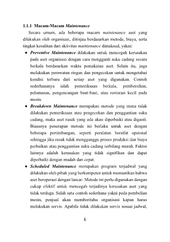 Secara  umum,  ada  beberapa  macam  maintenance  aset  yang