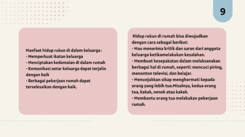 Manfaat hidup rukun di dalam keluarga : • Mau menerima kritik dan saran dari anggota