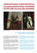 Programın ilk eğitimi olan “Ayakkabı Moda Tarihi Eğitimi”- ni, Dokuz Eylül Üniversitesi Güzel Sanatlar Fakültesi’nden Yrd. Doç. Dr. Öznur Enes’in eğitmenliğinde gerçekleştir- dik. Ayakkabı Departmanı’na yönelik olarak düzenlenen eğitimde ayakkabının tarihinden başlayıp satışına kadar birçok konuya yer verildi.