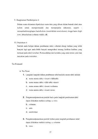 1. Langkah-langkah dalam pembuatan tabel melalui menu tabel adalah: