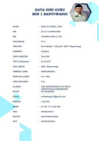 JABATAN : Guru Madya / PAI pada MIN 1 Banyuwangi