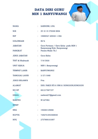 JABATAN : Guru Pertama / Guru Kelas pada MIN 1