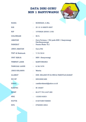 JABATAN : Guru Pertama / PAI pada MIN 1 Banyuwangi