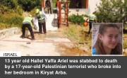 ISRAEL 13 year old Hallel Yaffa Ariel was stabbed to death by a 17-year-old Palestinian terrorist who broke into her bedroom in Kiryat Arba.