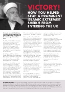 Knowing that Sheikh Sabri was bad news (see why on the next page), CUFI got straight to work in finding evidence supporting why Sabri should not be allowed into the UK, let alone enter the Palace of Westminster.
