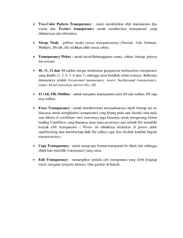 Copy Transparancy : untuk mengcopy format transparani ke objek lain sehingga