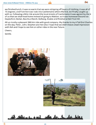 All up mostly a pleasant 380 Km ride with good company. My thanks to my 4 Tail End Charlies