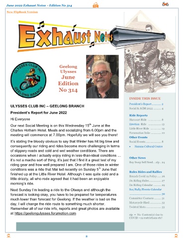 Charles Hotham Hotel. Meals and socializing from 6.00pm and the Little River Ride ............... 19