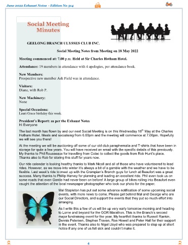 Attendance: 19 members in attendance with 4 apologies, per attendance book.