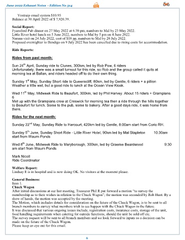 Sunday 5 June, Sunday Short Ride - Little River Hotel, 90km led by Mal Stapleton 10:30am