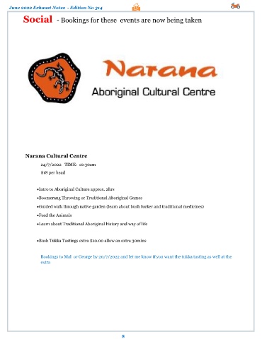 Bookings to Mal or George by 20/7/2022 and let me know if you want the tukka tasting as well at the