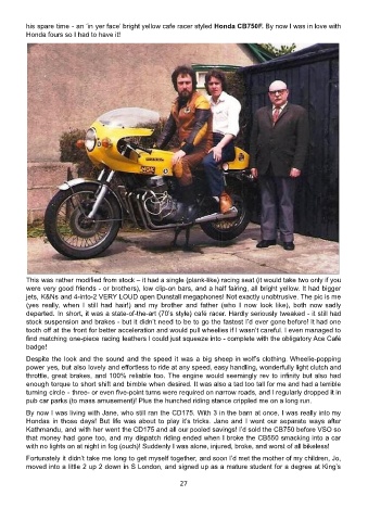 his spare time - an ‘in yer face’ bright yellow cafe racer styled Honda CB750F. By now I was in love with