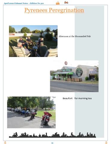 April 2022 Exhaust Notes - Edition No 312 Pyrenees Peregrination Afternoon at the Moonambel Pub Beaufort for morning tea 19