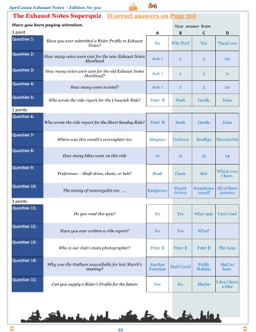 The Exhaust Notes Superquiz (Correct answers on Page 30)
