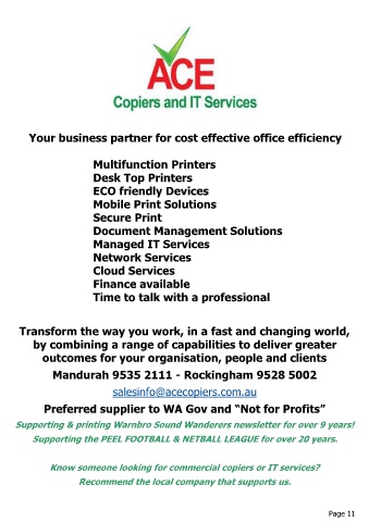 Supporting & printing Warnbro Sound Wanderers newsletter for over 9 years!