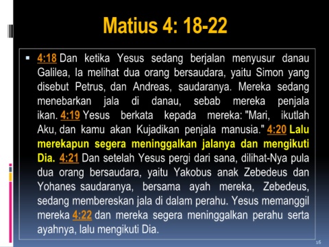 Aku, dan kamu akan Kujadikan penjala manusia." 4:20 Lalu