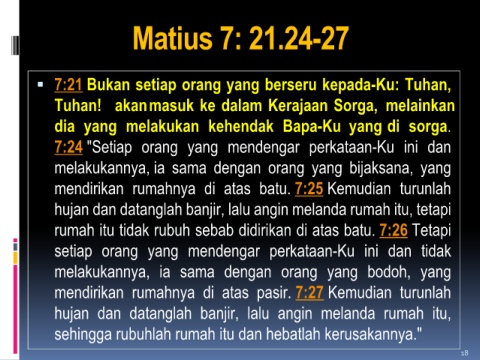 7:24 "Setiap orang yang mendengar perkataan-Ku ini dan
