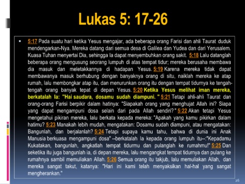 Manusia berkuasa mengampuni dosa" --berkatalah Ia kepada orang lumpuh itu--:"Kepadamu