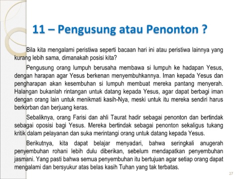 dengan harapan agar Yesus berkenan menyembuhkannya. Iman kepada Yesus dan