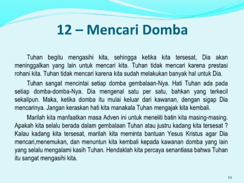 rohani kita. Tuhan tidak mencari karena kita sudah melakukan banyak hal untuk Dia.