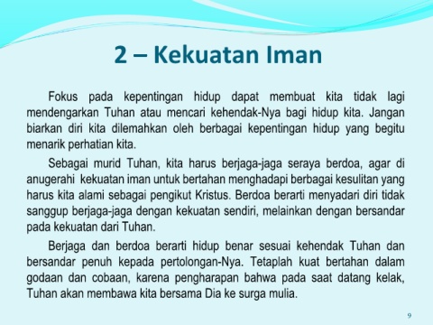 bersandar penuh kepada pertolongan-Nya. Tetaplah kuat bertahan dalam