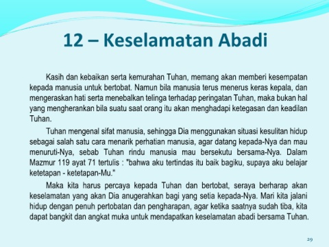 keselamatan yang akan Dia anugerahkan bagi yang setia kepada-Nya. Mari kita jalani