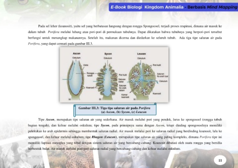 bagian tengah), dan keluar melalui oskulum; tipe Sycon, pada prinsipnya sama dengan Ascon, tetapi dinding spongosoelnya memiliki