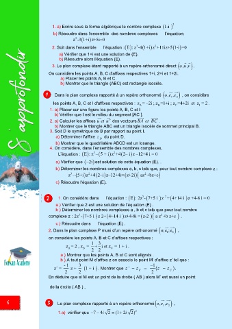 2. Dans le plan complexe P muni d’un repère orthonormé o;e ;e 2 ,
