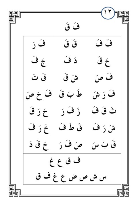 12 َ قَف َ رَف َ قَق َ فَف َ فَج َ فَد َ قَح َ تَق َ قَش َ صَف َ صَحَف َقَبَ ط َشَرَف َ قَرَح َ رَفَز َ فَقَث َ فَرَخ َفَ طَق َفَرَش َ دَقَح َرَفَص َسَبَق ََََََََََغَعَقَف قَفَغَعَضَصَشَس َ
