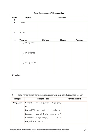 Tabel Mengevaluasi Teks Negosiasi