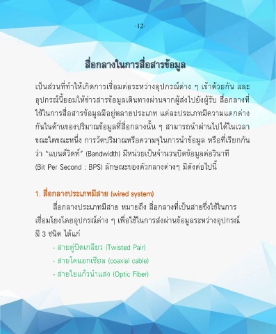 (Bit Per Second : BPS) ลักษณะของตัวกลางต่างๆ มีดังต่อไปนี้