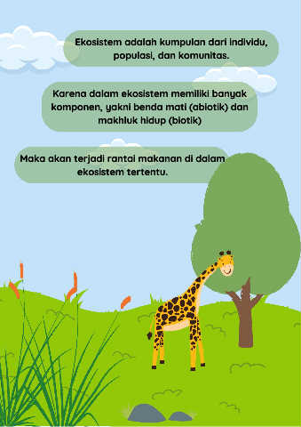 Ekosistem adalah kumpulan dari individu, populasi, dan komunitas. Karena dalam ekosistem memiliki banyak komponen, yakni benda mati (abiotik) dan makhluk hidup (biotik) Maka akan terjadi rantai makanan di dalam ekosistem tertentu.