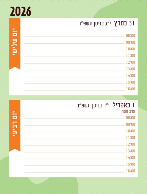 ישילש םוי 08:00 ישילש םוי 08:00 ןושאר םוי 08:00