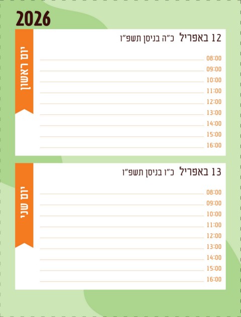 ישילש םוי 08:00 ןושאר םוי 08:00 ישימח םוי 08:00