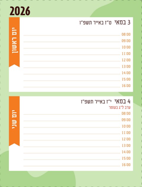 ינש םוי                                                        09:00                     יעיבר םוי                                                     09:00