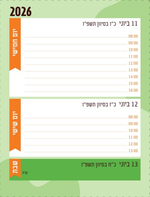 ינש םוי 08:00 ישיש םוי 08:00 יעיבר םוי 08:00