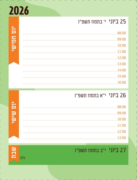 ינש םוי 08:00 ישיש םוי 08:00 יעיבר םוי 08:00