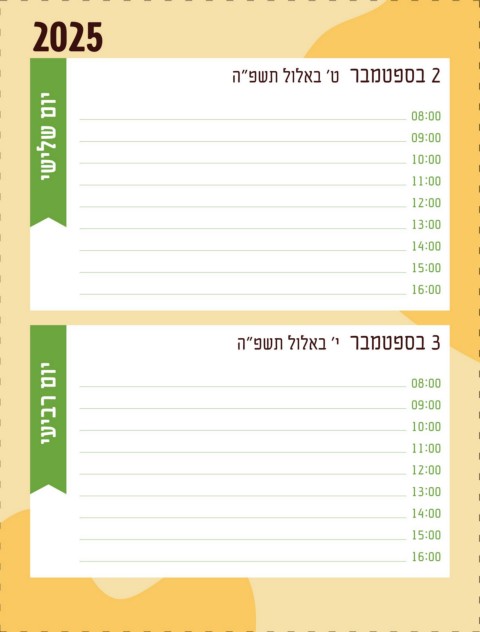ישילש םוי 08:00 ןושאר םוי 08:00