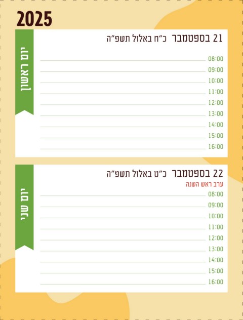 ינש םוי 09:00 יעיבר םוי 09:00