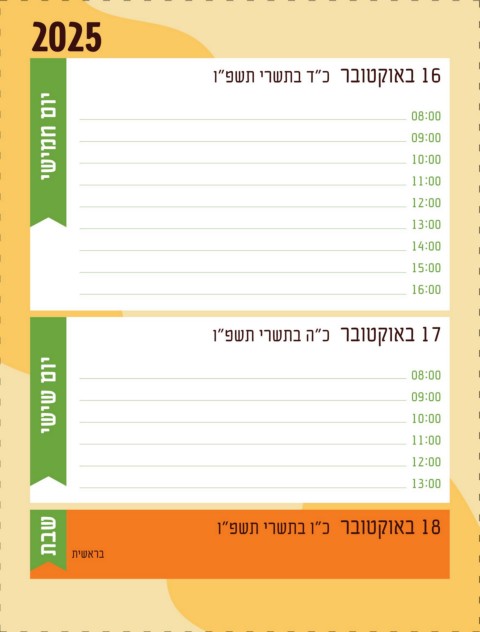 ןושאר םוי 08:00 ישימח םוי 08:00 ןושאר םוי 08:00