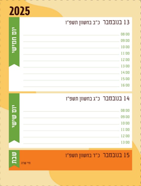 ינש םוי 08:00 ישיש םוי 08:00 יעיבר םוי 08:00