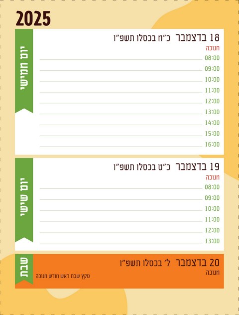 ישימח םוי 08:00 ןושאר םוי 08:00