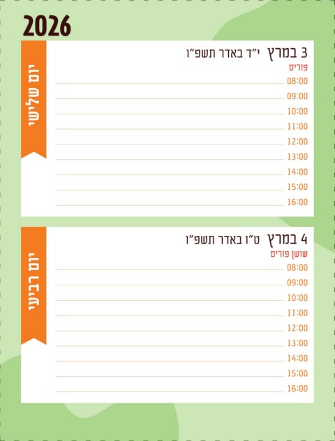 יעיבר םוי 08:00 ישיש םוי 08:00