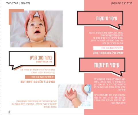 C C M M C C M M C C M M C C M M ןוסונומ-דוהי םיגוח תרבוח ,הדיל ירחא םיווחש םיישקה לכ םע 13:30-12:00 תועשה ןיב יעיבר ימי .תוחתפתהה םוחתב םיניינעמו םינווגמ תודדומתהל םילכ תיינקה - םייט יבייב ,תוחתפתהה ילגרס .אמאל ןהו קוניתל ןה םישדוח 3.5 דע הדיל יליגל םיאתמ םיאשונ דועו העונת ,ףוג תפש ,הניש ,הקירוטומ םייט יבייב - תוחתפתה יוויל פילפ יבייב - תוחתפתה יוויל ו"פשת-ה״פשת | 2025-2026 C C M M C C M M