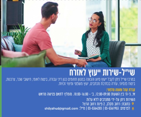 הנש דע םישדוח השולש ליגמ םיאתמ תואירב יבצמ לע לקהל ידכ היגולוסקלפרה .תויוכז יוצימו יטפשמ ץועי ,םיבתכמ תביתכב הרזע ,ינויסנפ חוטיב