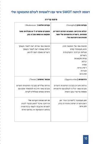 דוגמה לניתוח SWOTאישי עם רלוונטיות לעולם התעסוקה שלי