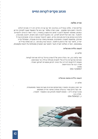 ולהדגיש נקודות מרכזיות מקורות החיים .חשוב להקפיד שהפנייה תהיה תמציתית (עד 5
