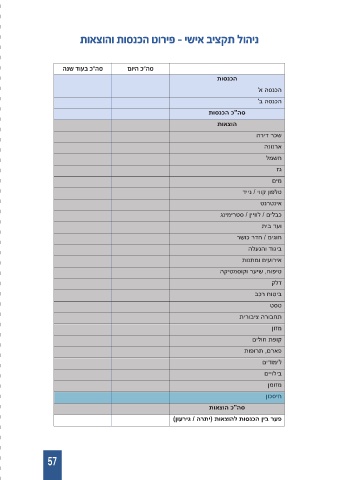 ניהול תקציב אישי -פירוט הכנסות והוצאות