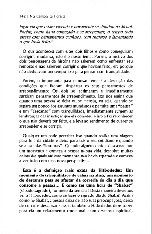 consome a pessoa… É como ter uma hora de “Shabat”                               barreiras fazendo que a pessoa abandone completamente a ideia
